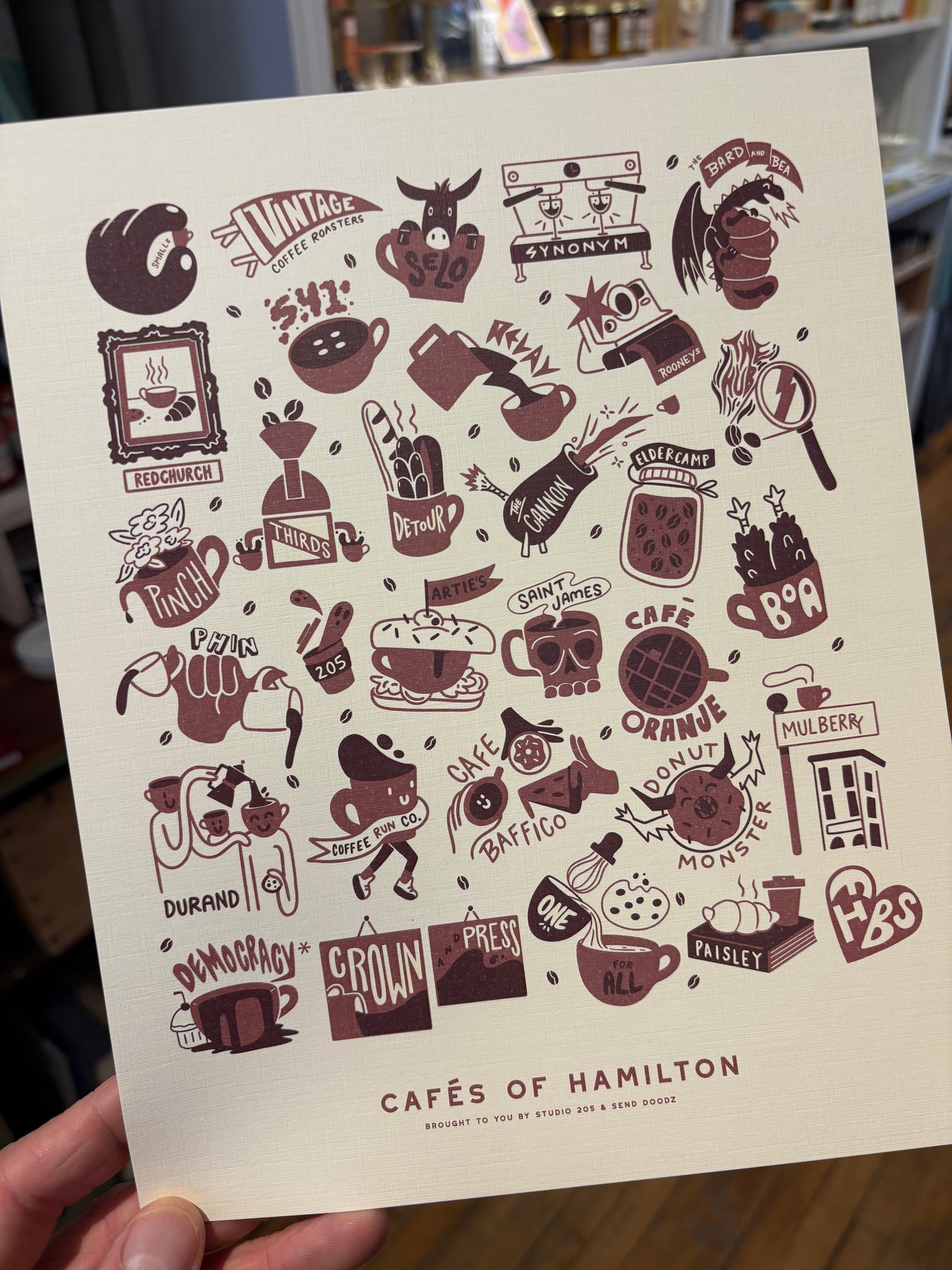 Our Cafes of Hamilton design printed on this gorgeous natural linen paper in 8x10!