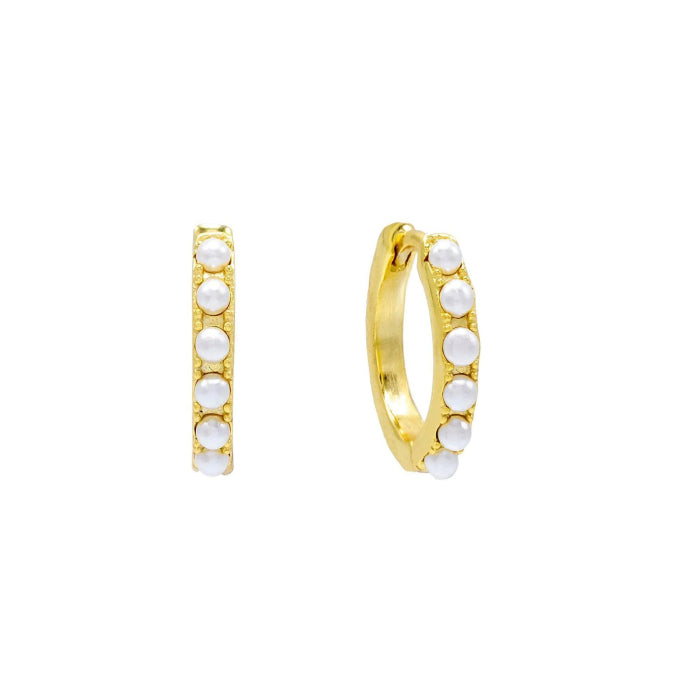 A sweet pair of hoops with a pop of pearl. Pair these with a big pair of vintage hoops and be on your way!