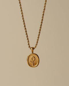 Sunflowers always face the sun, and you do too! The gold-plated finish gives it a distinct embossed look and guarantees it as an amazing everyday necklace. A twisted rope chain gives this floral necklace an added baroque edge.