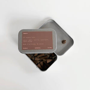 Each tin includes 2O incense cones, soaked in our hand-blended signature fragrances.