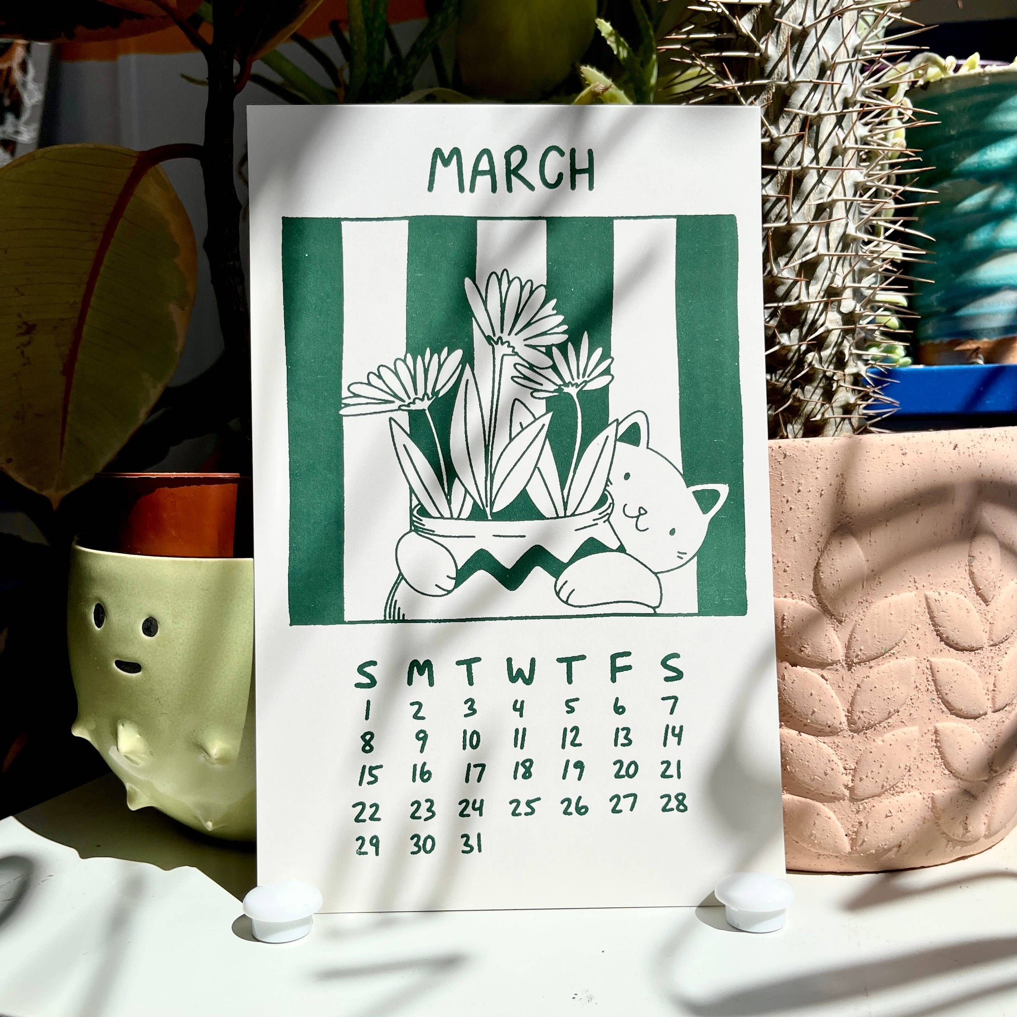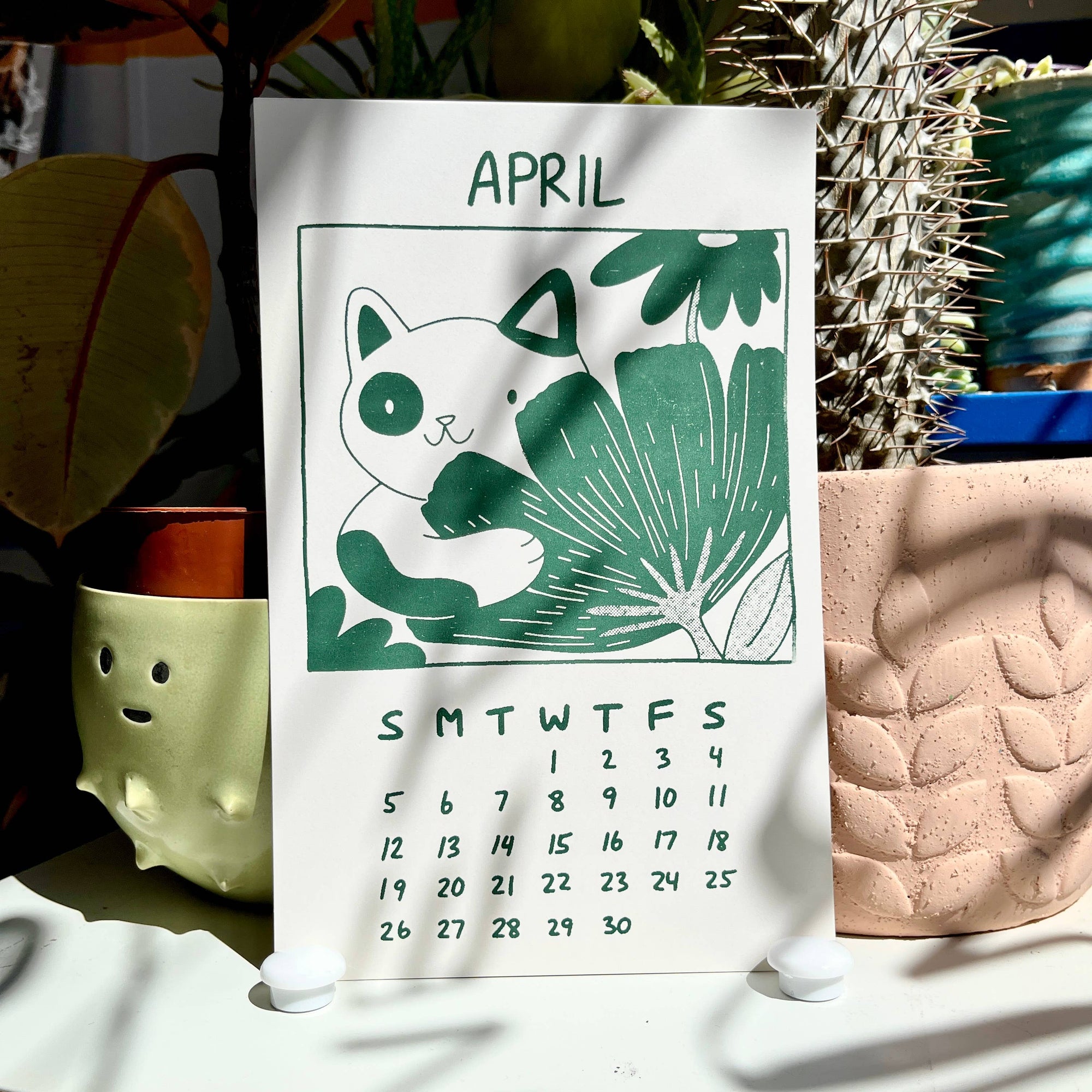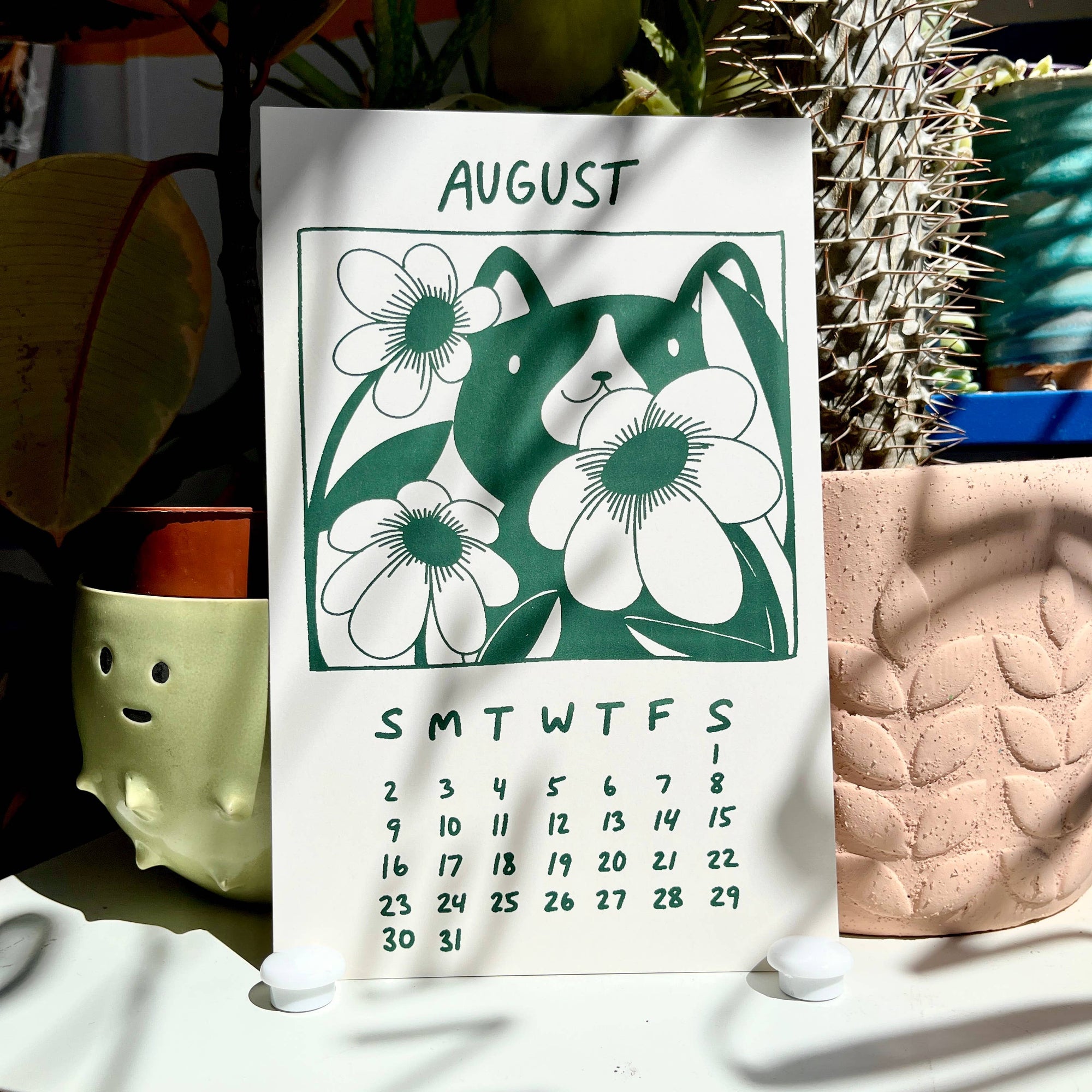 Secret Planet's 2026 calendar features a gang of cats who love to stop and smell the roses :) 12 Months 5.5"x 8.5" Each calendar comes with a binder clip for hanging Designed and hand screen printed in our studio.
