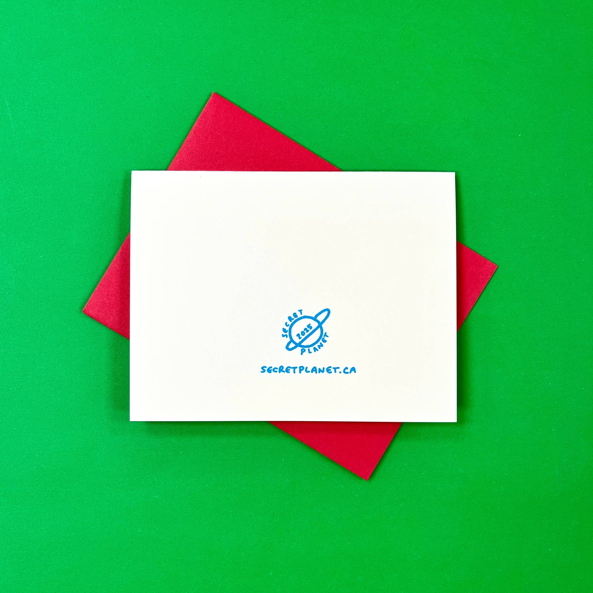 Happy Holidays from Secret Planet! All cards are blank inside and include an envelope. A2 size printed on 100lb acid free card stock.