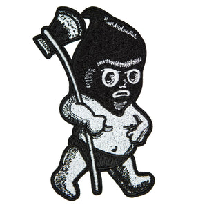 This embroidered patch features an illustration of a kewpie doll executioner — for those days when you're feeling cute, might deliver some righteous justice later IDK.