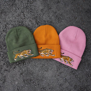 Our customer-favorite Tiger design, now on embroidered knit beanies! Available in three colors: